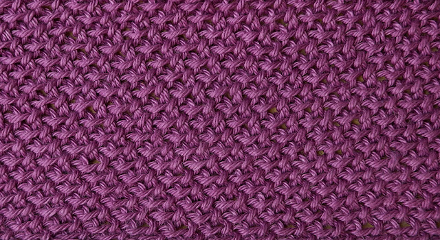 The lovely faux woven texture in this sample is simply made by alternating blocks of Diagonal Stripe. In this example blocks are 4 rounds high by 4 stitches wide but you can make the pattern any width or height.In this sample I began with a foundation using a multiple of 8 stitches.