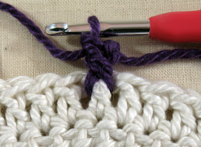 When working a spike stitch, insert the hook where the pattern tells you; yarn over the hook and pull the loop through the work; pull up to the level of a normal stitch. Then finish the stitch as normal. The stitches shown below are all double crochet, (UK); single crochet, (USA).